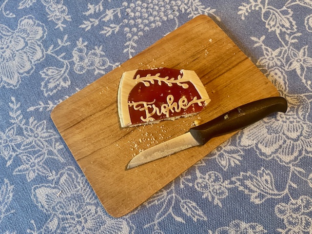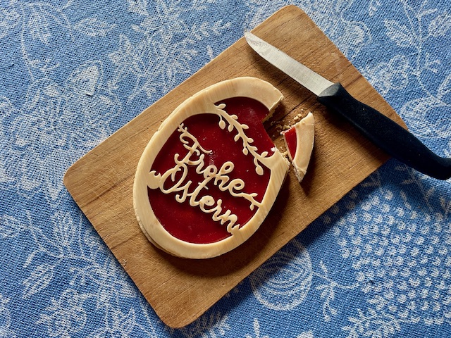 Nach dem herzhaften Frühstück wird – passend zum Abschluss der Osterzeit am heutigen weißen Sonntag – das letzte Süße angeschnitten.