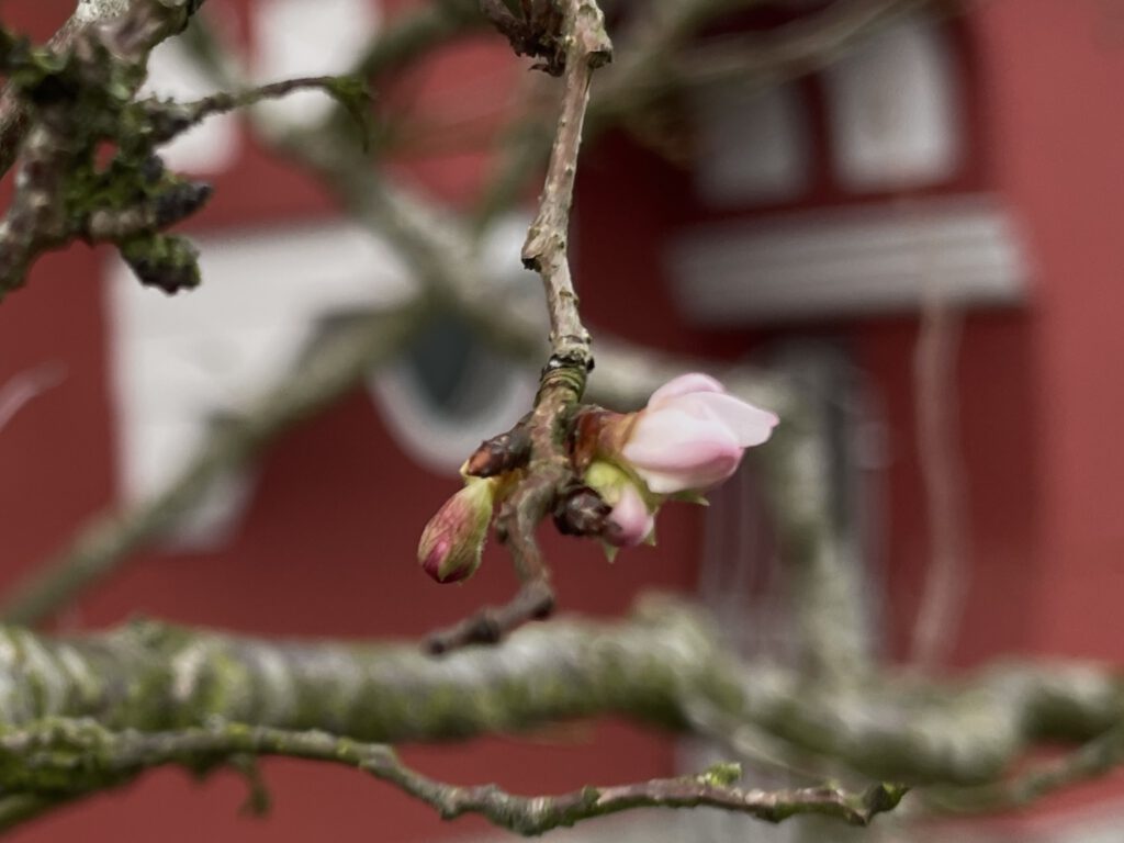 Die Rose von heute morgen blühte ja NOCH – die Kirsch vor unserem Haus blüht SCHON. Ich deute das heute als sehr gutes Omen.