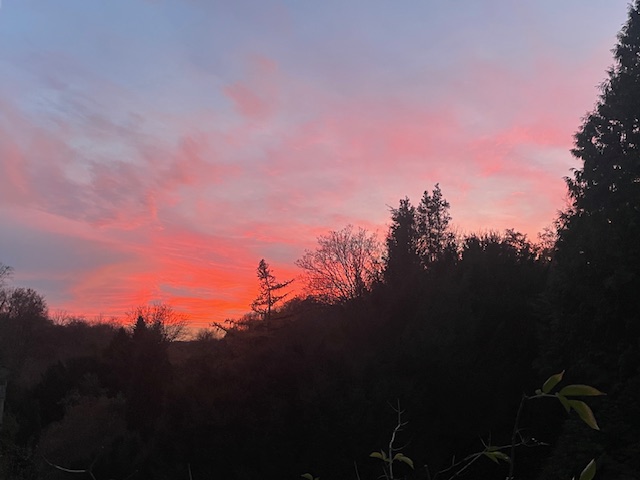 Jetzt geht es los mit meinem schönen 12. November – tatsächlich draußen: Sonnenaufgang überm Baldeneyer Berg. Und wenn er nur 165 Meter über dem Meeresspiegel thront, der Tag macht schon jetzt ordentlich was her!