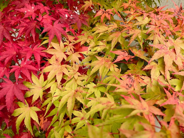 Danach gibt es einen Spaziergang. Der Herbst hat schon arg schöne Farben und der kleine Ahorn direkt vor unserem Haus verausgabt sich.