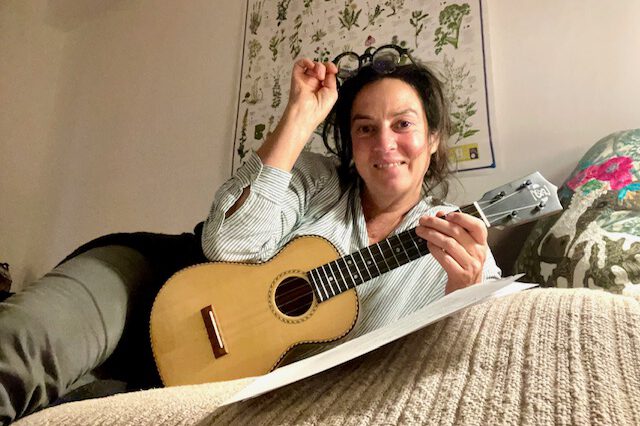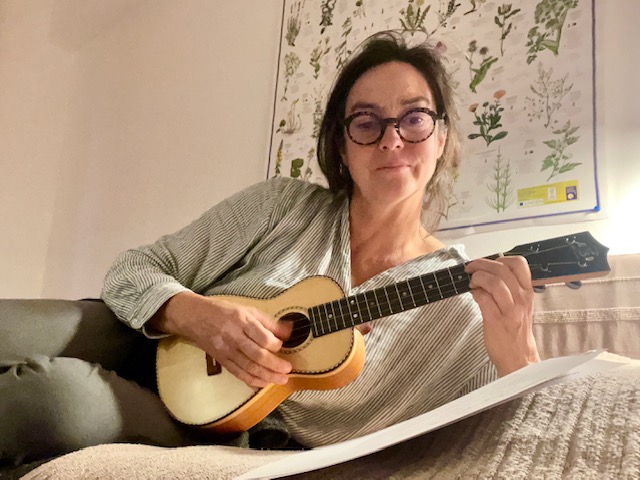 Zum Ausklang setze ich noch die ersten Akkorde und Melodie-Bögen für meine kleine Thérèse. Mit der Ukulele von Thorsten Lietz sowieso eine helle Freude. Ich sag doch: wenn Musik mit im Spiel ist … Der Refrain ist schon mal sehr schön geworden. Die Strophen – es sind immerhin 16 – mach ich morgen. Jetzt falle ich ins Bettchen und träume von Schweizer Bergen und franziskanischen Pilgerwegen, vielleicht auch von veganem Cevapcici, wer weiß?
