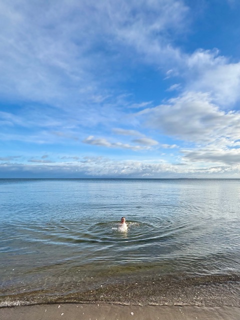 Apropos essentiell: ich habe – spontan und ungeplant den Übergang von 2025 auf 2026 IM Wasser, in der frischen Ostsee verbracht, geplantscht, gequitscht und das Feuerwerk bewundert. Voilà: